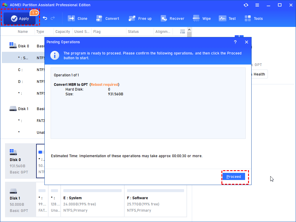 Schritt 3.Als nächstes kehren Sie zur Hauptoberfläche zurück und klicken auf „Anwenden”>”Fortfahren” um die Operationen zu begehen.