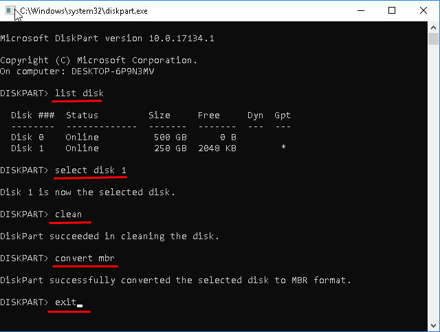 Schritt 5.Eingabe „gpt konvertieren” und drücken Sie „Eingeben“, um die Konvertierung abzuschließen. Geben Sie abschließend „Ausfahrt”.