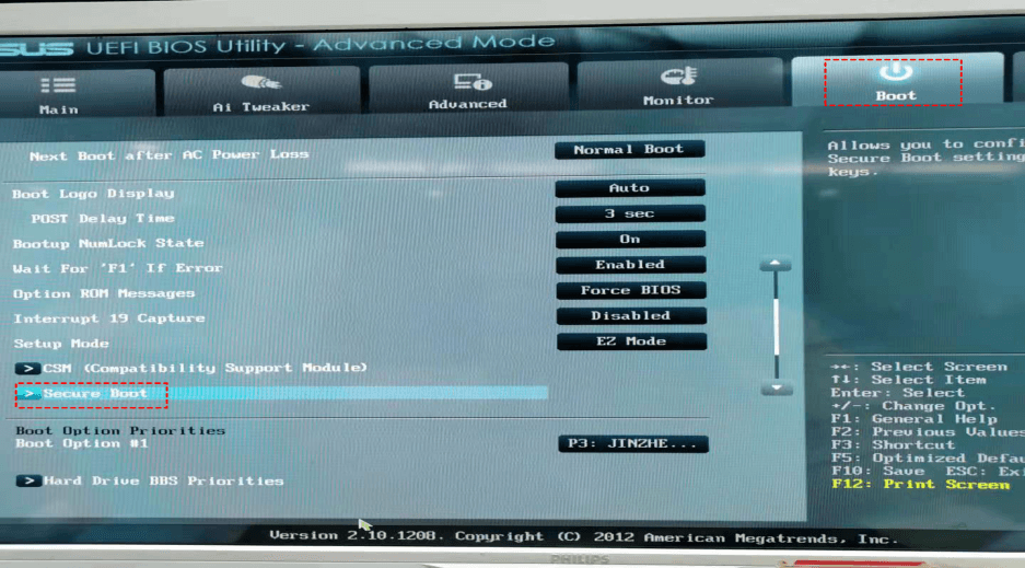 Schritt 1.Starten Sie Ihren PC neu und rufen Sie das BIOS auf, indem Sie die entsprechende Taste drücken. Wählen "Stiefel”>“Sicherer Start”.