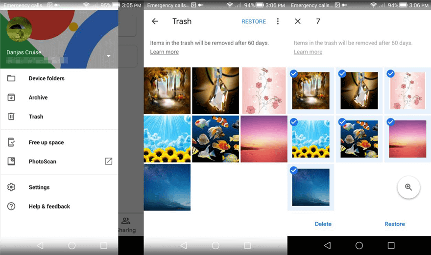 Wählen Sie Dateien aus Google Fotos zum Wiederherstellen aus