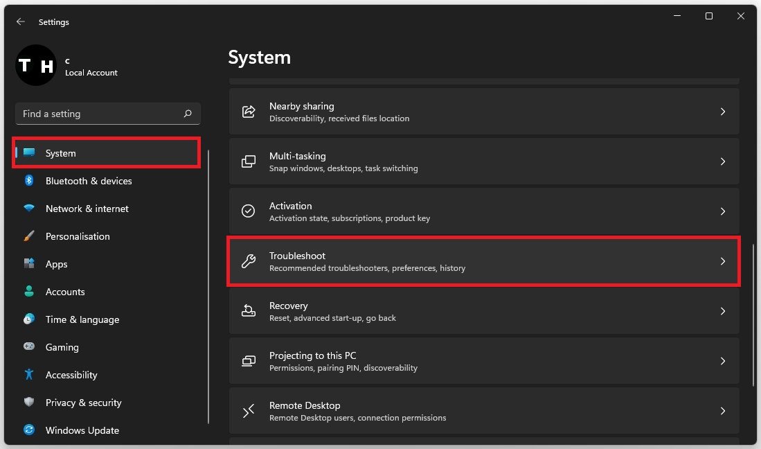 Wenn Ihnen nichts geholfen hat, navigieren Sie zu IhremSystemEinstellungen ändern und auswählenFehlerbehebung.