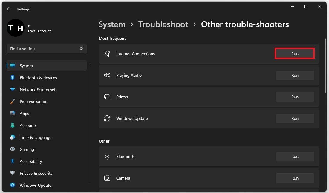 UnterAndere Fehlerbehebungen, führe das ausInternetverbindungenFehlerbehebung.