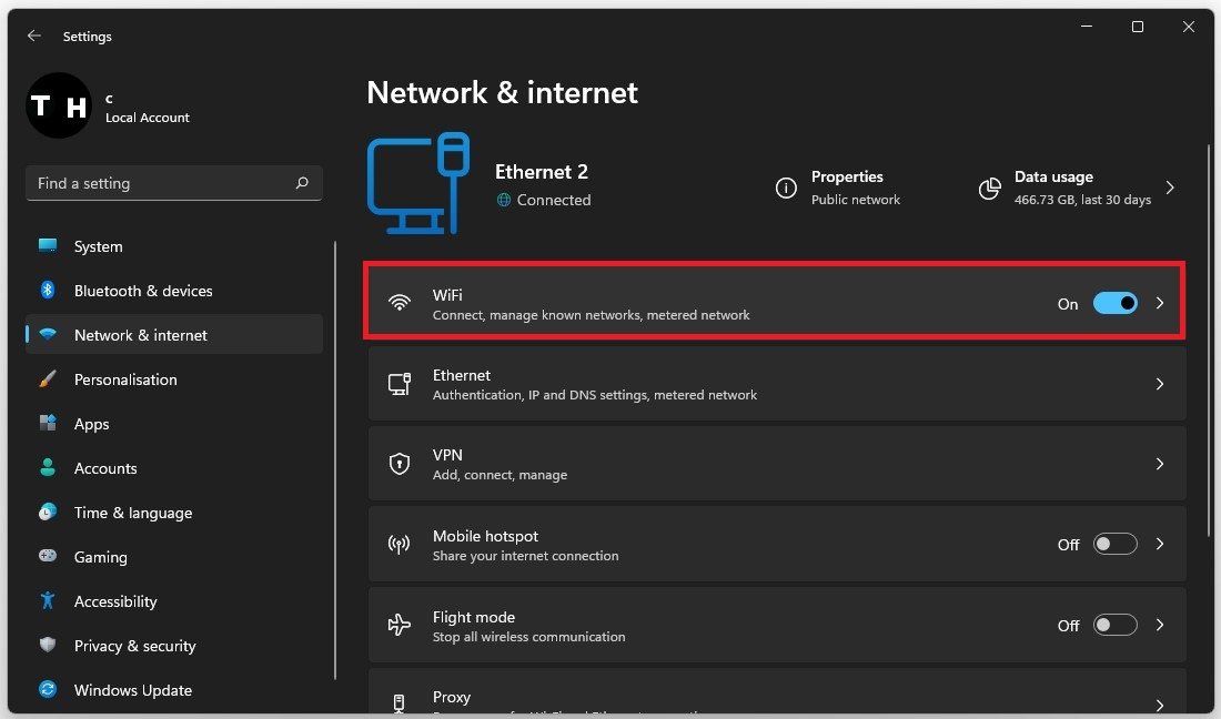 Sobald dies erledigt ist, öffnen Sie Ihre Windows-Einstellungen und es treten immer noch Probleme mit dem WLAN auf. ImNetzwerk & InternetIm Abschnitt können Sie eine Vorschau Ihrer aktuellen Internetverbindung anzeigen. Stellen Sie sicher, dass die WLAN-Option aktiviert ist.