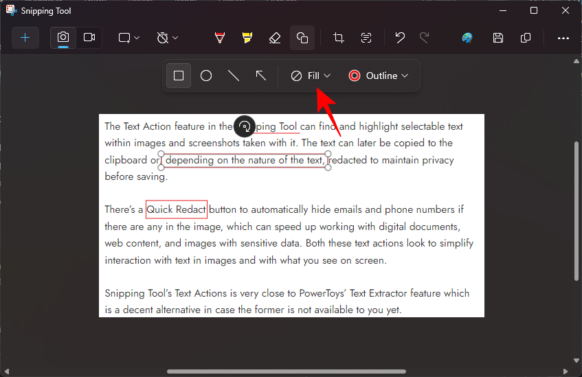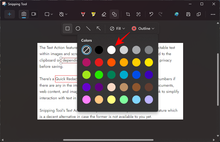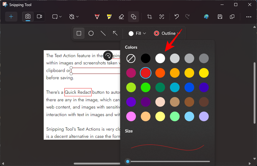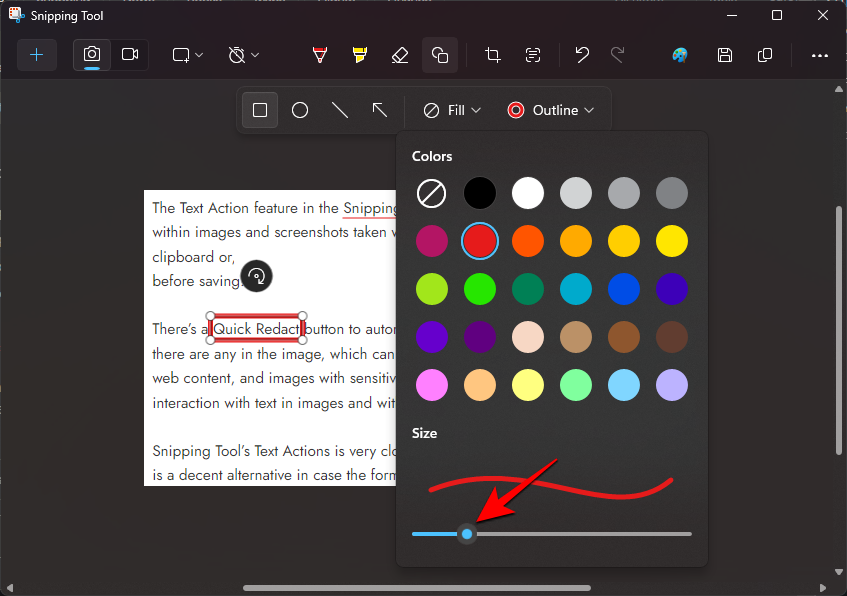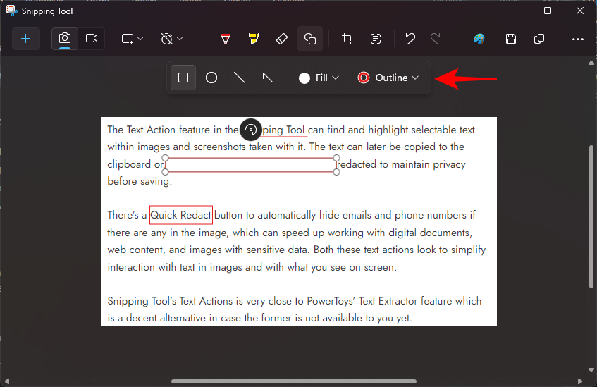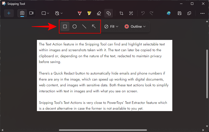 - Mit dem Snipping-Tool können Sie jetzt Formen hinzufügen und ihnen Füllfarbe, Umrissfarbe und Umrissstärke hinzufügen.