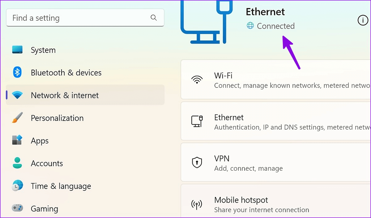 Étape 2.Appuyez sur leWindows + jeraccourci clavier pour lancer les paramètres. ChoisirRéseau & Internetdans la barre latérale et vérifiez unConnectéstatut.
