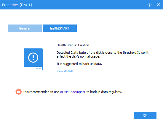 Cela montre qu'un ou plusieurs attributs sont proches du seuil. Le disque peut toujours être utilisé normalement, mais il est conseillé de faire une sauvegarde des données importantes en cas d'accident.