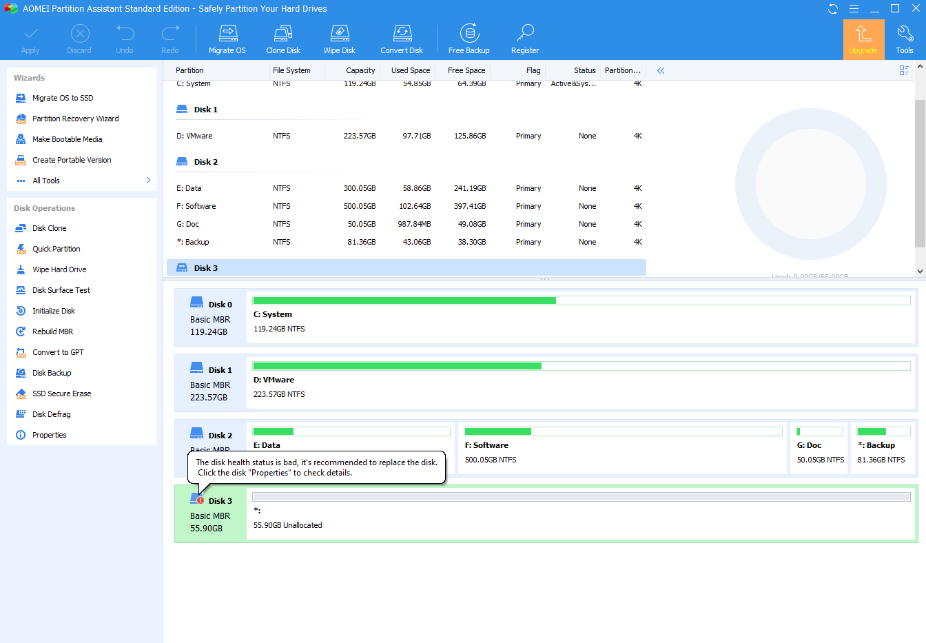 Ce logiciel multifonctionnel peut non seulement déployer pleinement ses talents en matière de vérification de l'état du disque et de sauvegarde des données, mais il peut également servir à déplacer des applications vers un autre disque, à convertir entre MBR/GPT, à effacer en toute sécurité un SSD, etc. Cet outil puissant offre également aux utilisateurs de Windows Server avec Server Edition de profiter de la commodité et de l'efficacité lors de la gestion de leurs appareils.