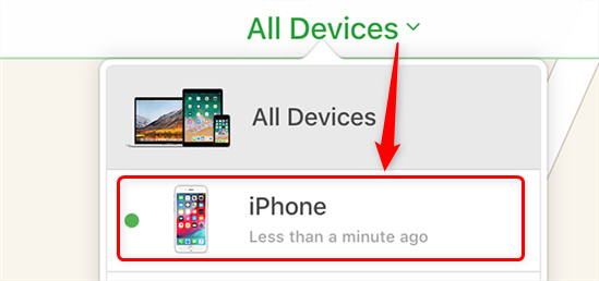 Étape 3. Sur l'écran suivant, cliquez sur Tous les appareils en haut et sélectionnez l'iPhone sur lequel le verrouillage d'activation est activé.