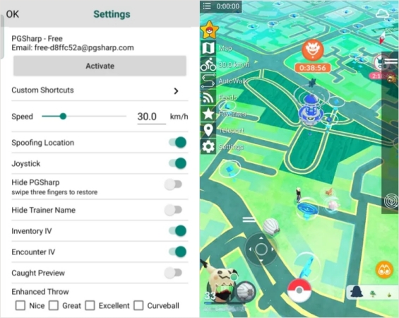 PGSharp est un outil d'usurpation d'identité bien connu doté d'un joystick intégré directement dans Pokemon GO. Il propose la téléportation, la marche automatique, des minuteries de recharge et la gestion des itinéraires. PGSharp simplifie l'utilisation du joystick sans configuration supplémentaire, permettant aux joueurs de cultiver des objets, de participer à des événements et d'explorer efficacement la carte du jeu.