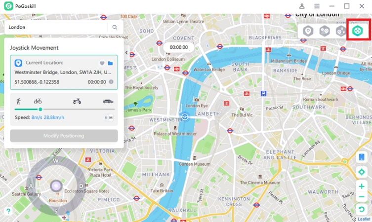 Étape 1.Lancez Fake GPS Location, choisissez un endroit sur la carte et activez le mode joystick. Ajustez la position du joystick pour une utilisation confortable dans le jeu.
