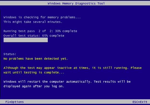 Étape 3 : Votre système redémarrera, puis un test de diagnostic sera lancé. Il vous montrera s'il y a des erreurs dans votre mémoire.