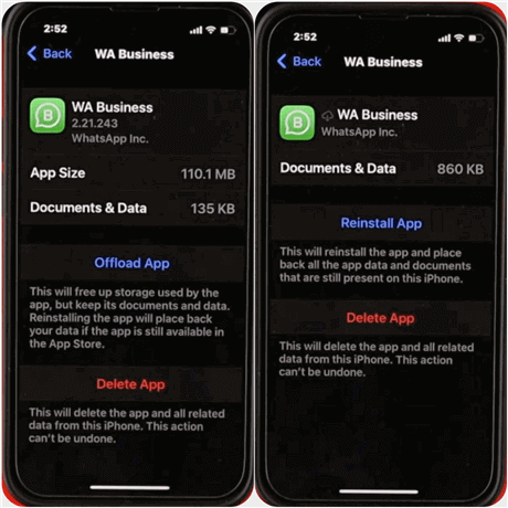 Étape 4. Choisissez « Décharger l'application » pour libérer de l'espace sans supprimer l'application ou « Supprimer l'application » pour tout supprimer.