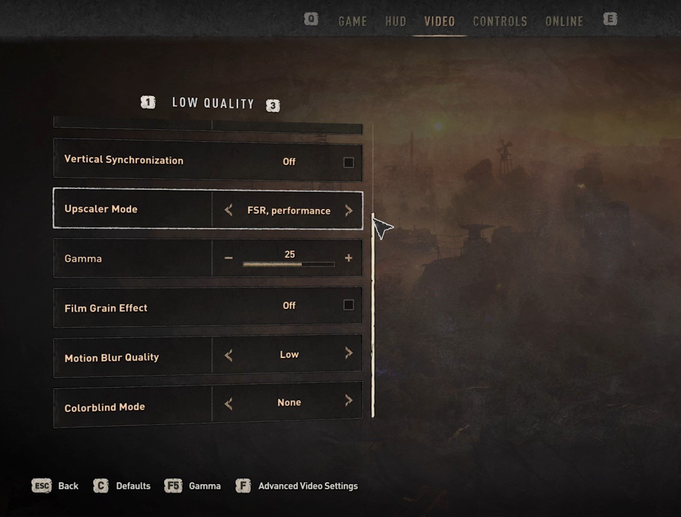 Paramètres vidéo de Dying Light 2 > Mode Upscaler