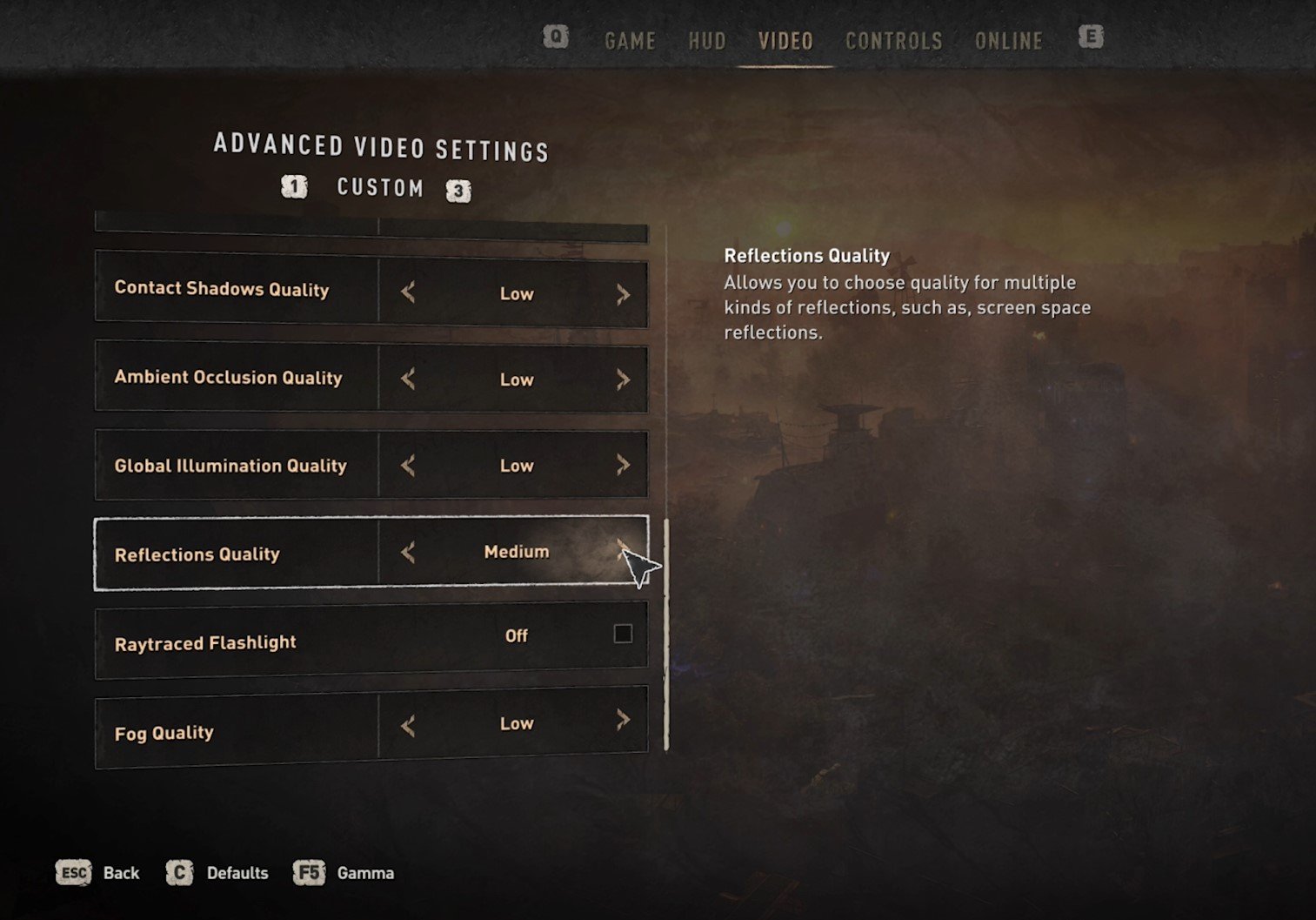 Pour obtenir les meilleures performances, vous souhaiterez réduire les paramètres suivants au minimum. Surtout votreQualité de l'anticrénelagedevrait être réglé surFaible. Réglez leQualité des ombres solairesàPCF, vous offrant ainsi plus de performances lors du rendu des ombres solaires. Pour vous immerger davantage dans le jeu, vous pouvez augmenter leQualité des réflexionsàMoyenouHaut, car cela ne diminuera pas significativement vos performances. Le jeu devra peut-être redémarrer pour appliquer certaines de ces modifications lorsque vous avez terminé, et vous devriez rencontrer une fréquence d'images beaucoup plus élevée lorsque vous jouez à Dying Light 2 sur votre PC ou ordinateur portable.