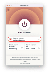 - Ouvrez l'application ExpressVPN et cliquez sur le« Emplacement sélectionné »bouton.