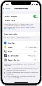 - Appuyez sur« Services de localisation »et basculez le commutateur sur"Désactivé.”