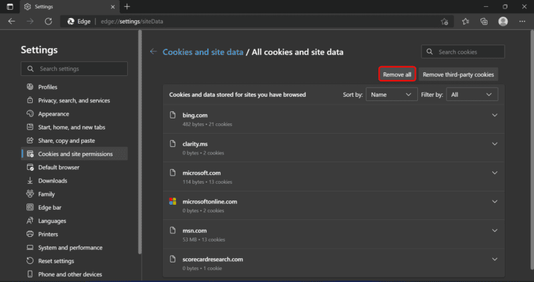 - Appuyez sur« Voir tous les cookies et données du site.”
