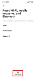 - Faites défiler vers le bas et appuyez sur"Réinitialiser le Wi-Fi, les réseaux mobiles et le Bluetooth.”