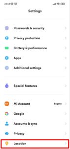 - Ouvrez leParamètresapplication et appuyez sur"Emplacement.”