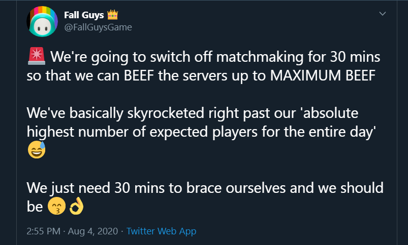 Tweets des développeurs de Fall Guys