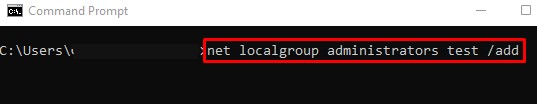 Étape 6: Tapez cette autre commande, "les administrateurs du groupe local net testent/ajoutent», pour faire de votre compte « test » créé un administrateur.
