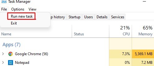 Étape 2 :Sélectionnez Fichier et choisissez «Exécuter une nouvelle tâche“