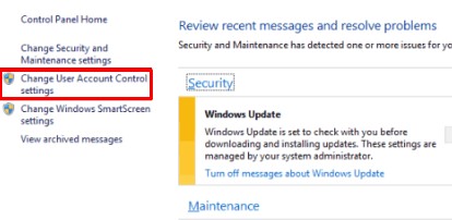 Étape 3 :Faites défiler sous et sélectionnez «Modifier les paramètres de contrôle de compte d'utilisateur“