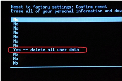 Sélectionnez l'option « effacer les données/réinitialisation d'usine »
