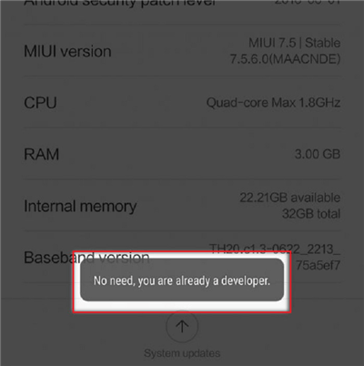 - Maintenant, appuyez sur l'option Numéro de build en continu jusqu'à ce que la notification Pas besoin, vous êtes déjà un