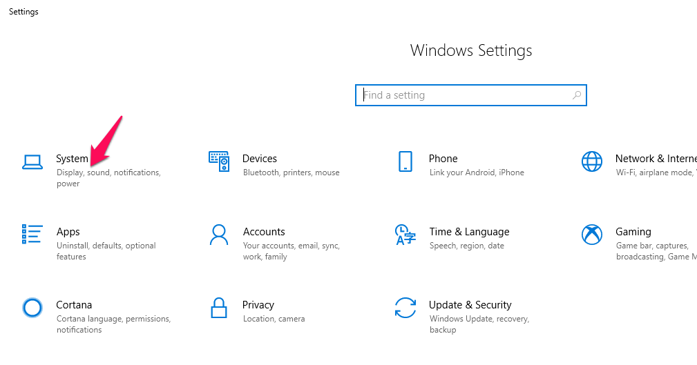 - Lancement 'Paramètres'option sur votre bureau Windows 10.