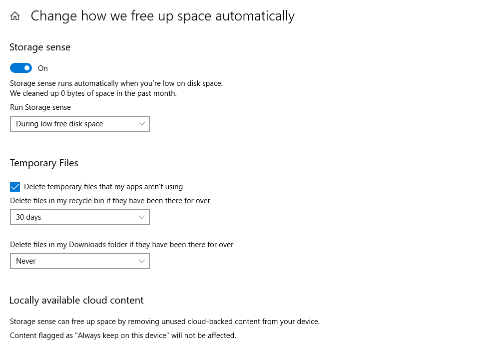 Cela devrait vous aider à prendre soin de votre dossier temporaire, de vos fichiers Internet temporaires et d'autres fichiers inutiles une fois configurés. Idéalement, l’outil intégré supprime les fichiers restés inutilisés pendant plus de 30 jours. Cependant, vous pouvez également le modifier en 1 jour, 14 jours et 60 jours. Ce serait quelque chose dont vous devrez vous occuper en fonction de vos préférences individuelles.