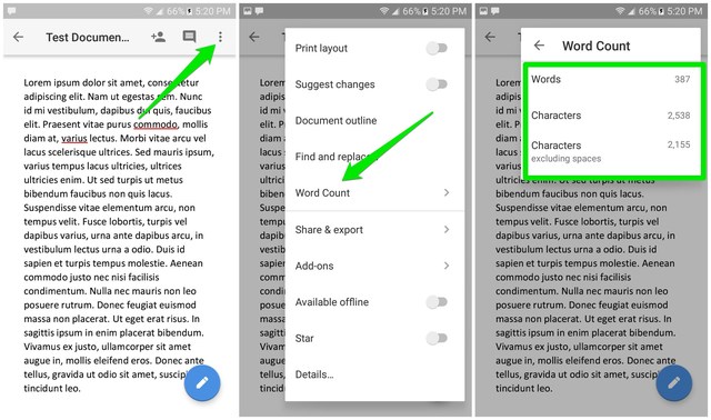 Comment vérifier le nombre de mots sur l'application Google Docs Android/iOS