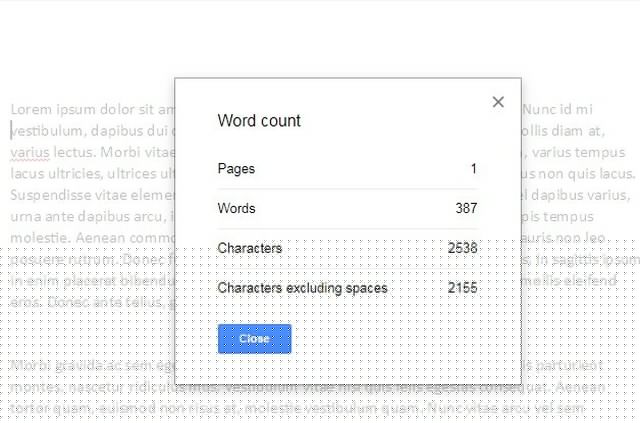 Le nombre de mots s'ouvrira dans le même panneau, répertoriant le nombre total de mots, de caractères et de caractères sans espacement.