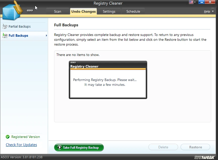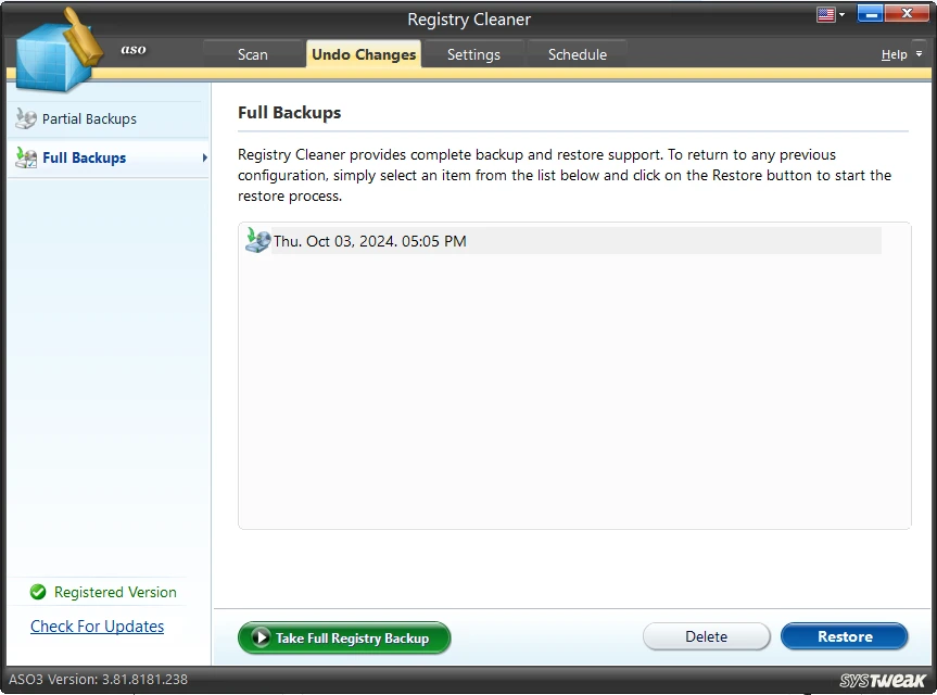 4.Cliquez sur Effectuer une sauvegarde complète du registre et attendez la fin du processus.