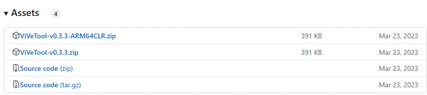 Étape 2 : Recherchez et téléchargez le fichier ViveTool.zip.