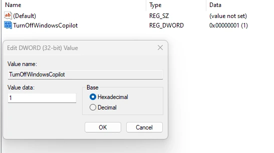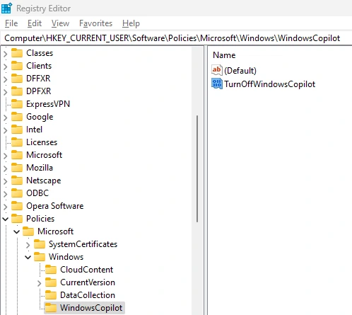 Étape 7 : Renommez cette clé en « TurnOffWindowsCopilot ».