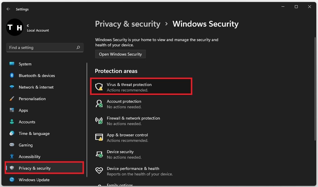 SousSécurité Windows, cliquez surProtection contre les virus et les menaces.