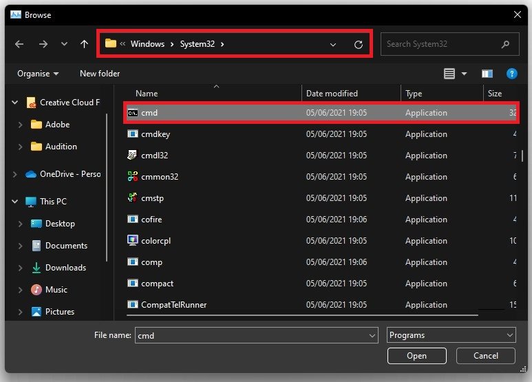 Accédez à votreC : conduire,Fenêtres,Système32, sélectionnerCMDet cliquez surOuvrir.
