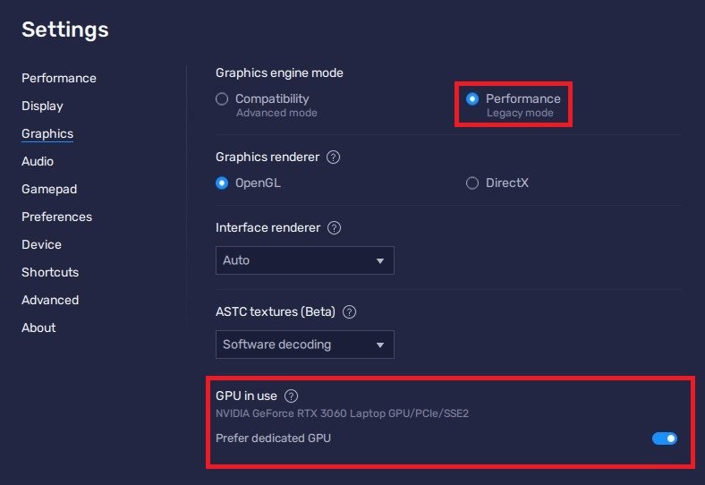 Mode moteur graphique BlueStacks