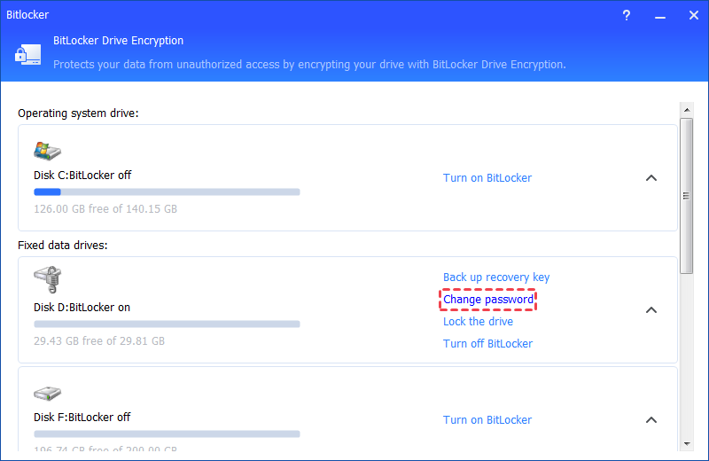Étape 1. Localisez le lecteur dont vous souhaitez modifier le mot de passe. Cliquez sur l'option « Modifier le mot de passe ».