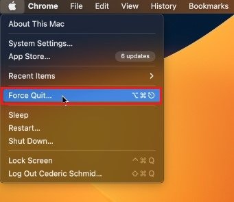 Si vous rencontrez des problèmes pour lancer une application spécifique ou si l'application plante de manière aléatoire, vous devez tout d'abord forcer l'arrêt du processus sur votre Mac. Pour ce faire, vous pouvez utiliser la commande de raccourci et Q tout en sélectionnant l'application ou cliquer sur l'icône Apple en haut à gauche de votre écran et sélectionnerForcer à quitter.