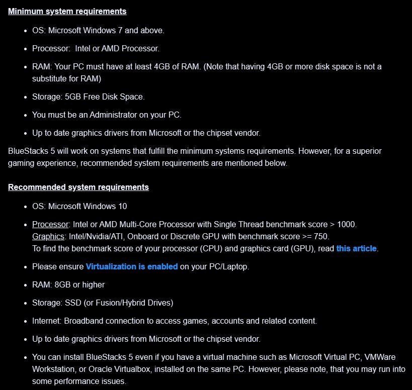 Configuration minimale requise pour BlueStacks