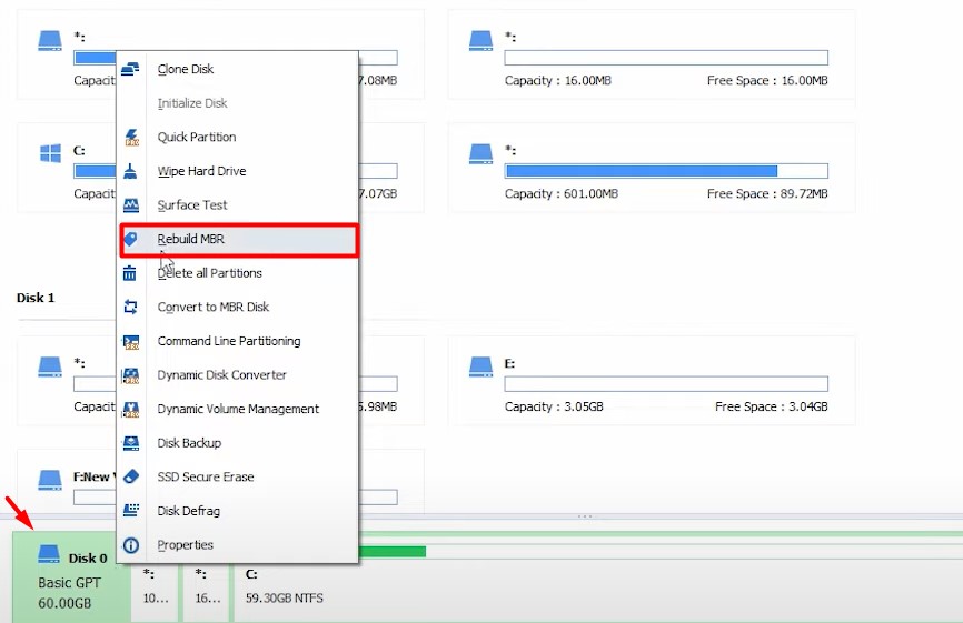 Étape 4 :Sélectionnez avec le bouton droit la personne concernéedisqueet appuyez surReconstruire le MBR