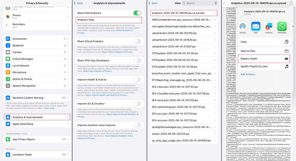 Étape 3.AllumerPartager les analyses iPadet appuyez surDonnées analytiques.