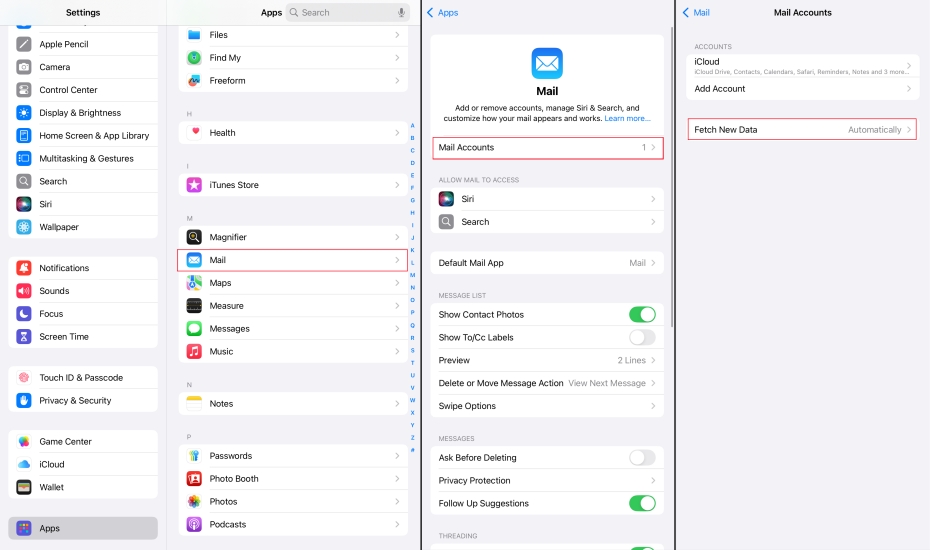 Étape 1.Allez sur iPadParamètres > Applications > Mail.
