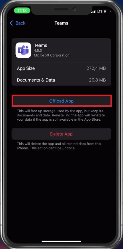 Le chargement de vos informations de stockage prendra quelques secondes et vous pourrez rechercher l'application dans laquelle la rotation de l'écran ne fonctionne pas. Ici, appuyez surDécharger l'application. Cela effacera le cache de votre application et rétablira l'application, évitant ainsi tout problème logiciel qu'elle aurait pu rencontrer.