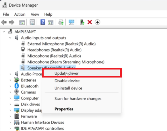 Faites un clic droit sur votre périphérique de sortie audio (par exemple, haut-parleurs ou écouteurs) et sélectionnezMettre à jour le pilote.