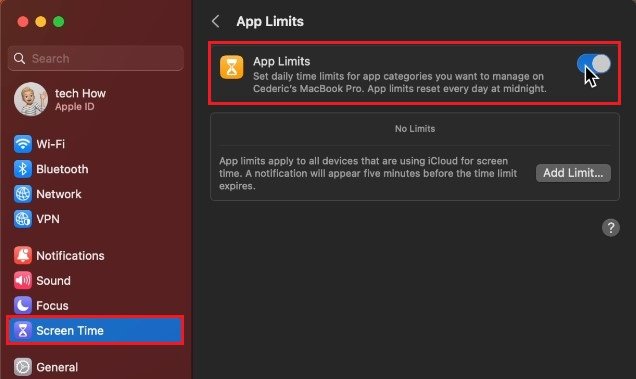 Désactiver les limites de l'application de temps d'écran