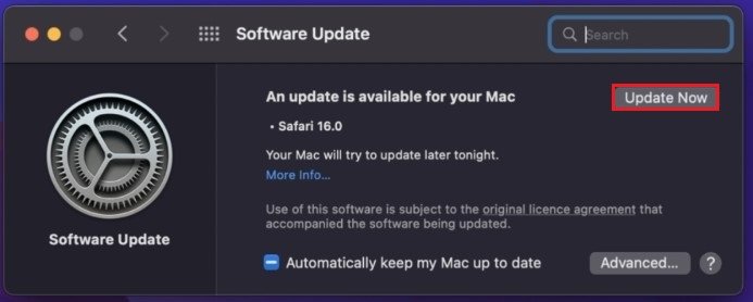 Si ces paramètres semblent un peu différents sur votre Mac, assurez-vous que vous exécutez la dernière mise à jour logicielle. Dans leGénéralsection de vos paramètres, cliquez surMise à jour du logiciel. Téléchargez la dernière mise à jour avant de redémarrer votre Mac. Cela peut, à son tour, aider à résoudre les problèmes de Minecraft sur votre système.
