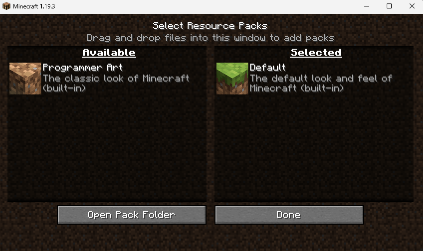 Utiliser le pack de ressources Minecraft par défaut